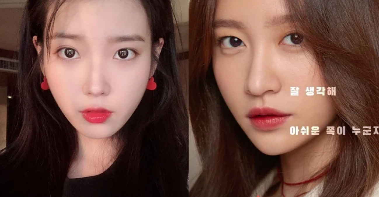 第二组内双眼型的代表就是IU跟Hani啦!IU跟Hani的共同点是两者的眼型都是一只眼睛偏内双、一只偏外双,而且整体眼型更圆一点点~所以两人的眼妆重点会比较著重在平均两边眼型。