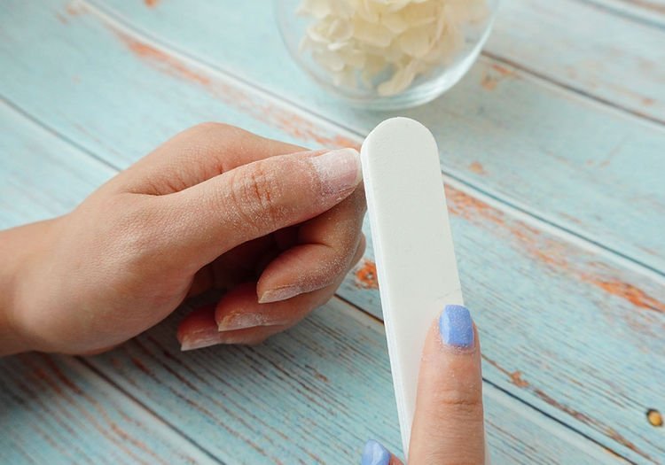 自己卸甲/拆甲方法及步骤4.用细砂磨修饰甲面