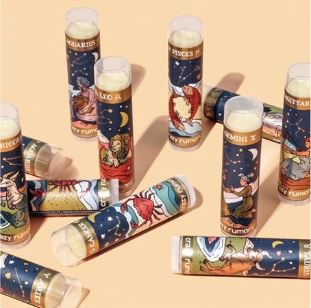 美国人手一支的Crazy Rumors护唇膏引进台湾,可爱丰富的香味和缤纷的外型,总让人爱不释手!今年品牌更推出绝美的12星座系列,外型以优雅隽永的墨蓝当作暗夜,以金铜色让星座跃上润唇膏,并细致的描绘每一个星座所代表图案,仿佛将璀璨的星空缩小收入手中。