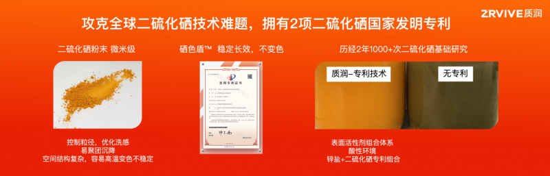 基于这一消费者洞察,质润团队历经2年1000多次研究实验,最终通过革命性技术突破——“硒立稳™”²“硒色盾™”³两项国家技术发明专利,成功解决了二硫化硒应用的世界性难题。