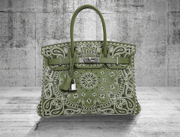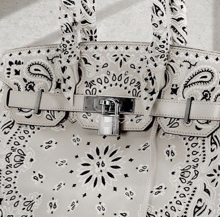 这组照片中,凯莉珍娜背后的爱马仕“柏金包”,是由比利时品牌“JAY AHR”设计师Jonathan Riss改造而成,他运用精湛的刺绣工艺技术,在经典铂金包制作出Bandana丝巾图腾,全球就只有这么一个!为品牌“The Vintage Iconic Hermes Bag X Jay Ahr Collection”中“Bandana ”系列的白色款式,在早先Jonathan Riss也曾经制作过绿色与灰紫色款,一颗Bandana系列刺绣柏金包就要价38,500美元,约台币115万,买得起这款包还不算有钱吗?