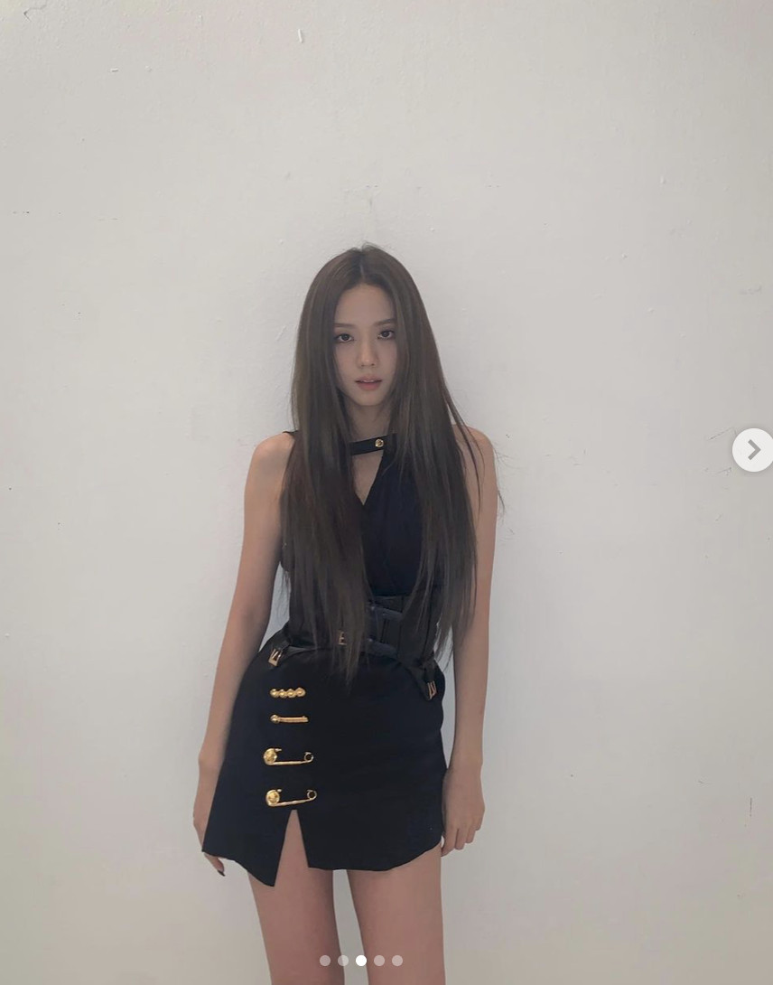 Jisoo换上Versace迷你裙装。