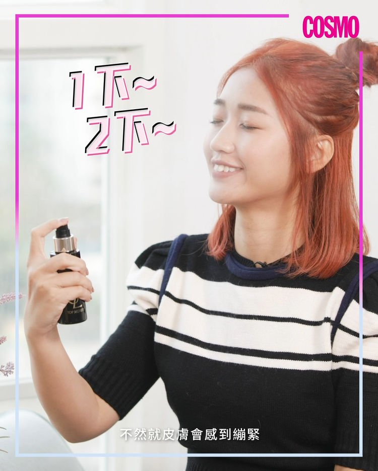 面部和唇部定妆产品都避免使用过量,适可而止便可,否则便会形成过厚的保护膜,令皮肤变得绷紧。面部定妆的话建议喷一至两下,而且要距离十至十五厘米,这样有效避免喷雾过份集中;而唇部定妆的话建使薄薄涂一层即可。唇部定妆会改变唇妆的妆效,令它变得哑致,所以建议避免使用唇蜜或唇釉。