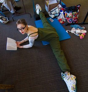 如果大腿后侧紧就弯曲著双腿做,尽量让腹部贴靠大腿面,然后慢慢伸直,保持20秒。