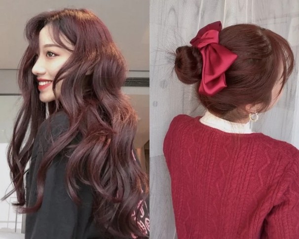 这款发色相较前几款来说更偏红一点,在室外时就是很有活力、带有微微复古感的红棕色,但是在室内时会是一个带有红紫色的深棕色,不仅更显白,也不会有大红色的俗气感!