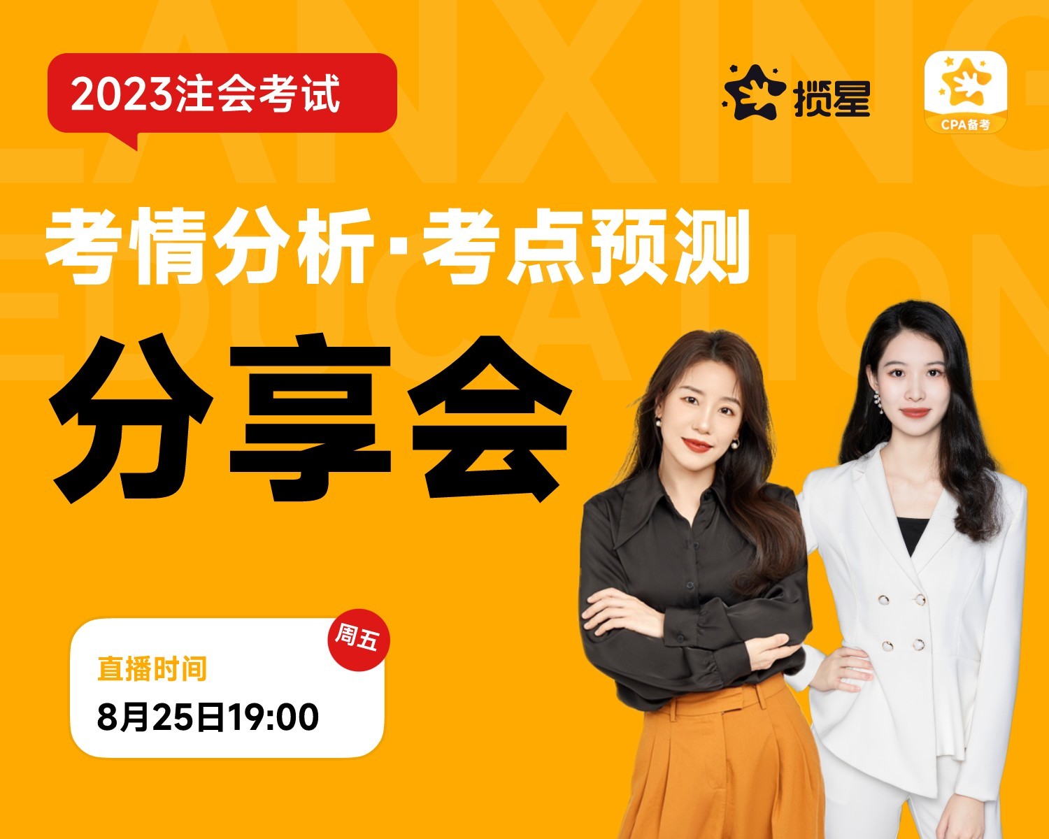 揽星教育为助力广大财会学子冲刺注会,在8月25日晚7点至8点将举办《考前分析·考点预测》线上分享会,此次分享会,将由揽星教育两位行业资深讲师为大家解析当天考试科目真题,以及对26日、27日两天考试科目的考点进行预测,帮助学员们明晰考试科目的复习方向,更好的熟悉了解考点,助力学员在2023注会考试中拿下高分!