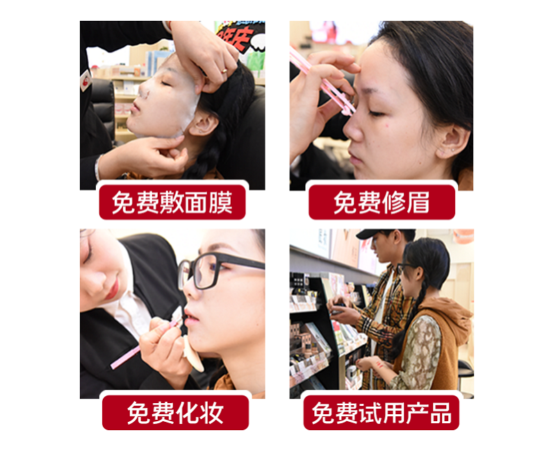 老老实实卖货,认认真真服务,金甲虫为大家提供四大免费服务:免费敷面膜、免费修眉、免费化妆、免费体验产品!