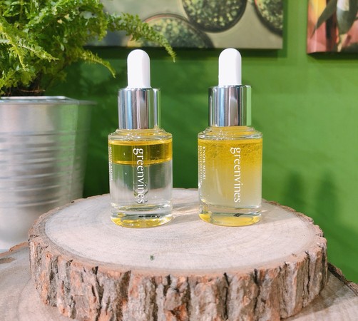 绿藤生机舍弃界面活性剂、修饰性粉体等非必要成份,且为提升产品的活性密度,突破一般眼霜框架,打造出全新形态眼周护理品「澄澈眼部双精华」。上层油萃成分能提升紧致度与明亮感,改善纹路;下层的水相精华含有七种舒缓修护功能草本,能为敏感脆弱的眼周肌肤,抵抗频繁活动、上妆等外界刺激。